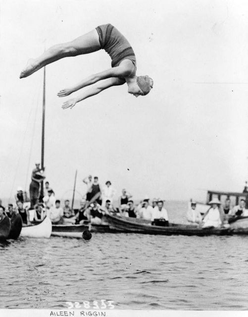 Images > aquatics > Aileen Riggin, Olympic diving champ, at aquatic carnival of the Huguenot Boat Club, New Rochelle, N.Y.. The image is drawn from the US Library of Congress's collections. Believed to be in the public domain - LOC lists no known restrictions on publication.