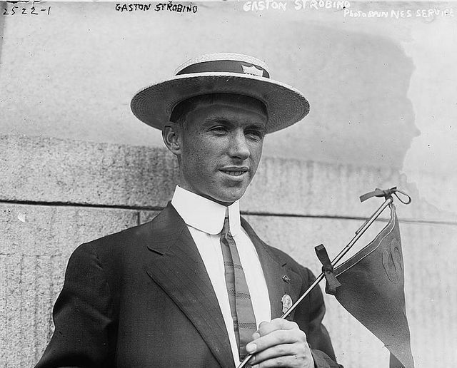 Images > athletics > Gaston M. Strobino (1891-1968), a Swiss-born American athlete who won the bronze medal in the marathon event at the 1912 Olympics. . The image is drawn from the US Library of Congress's collections. Believed to be in the public domain - LOC lists no known restrictions on publication.