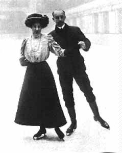 British skaters Edgar and Florence Syers, 1908 Olympic Games. From The Fourth Olympiad, being the Official Report of the Olympic Games of 1908. London: British Olympic Association. The image is drawn from the US Library of Congress's collections of books and journals. The image is in the public domain.