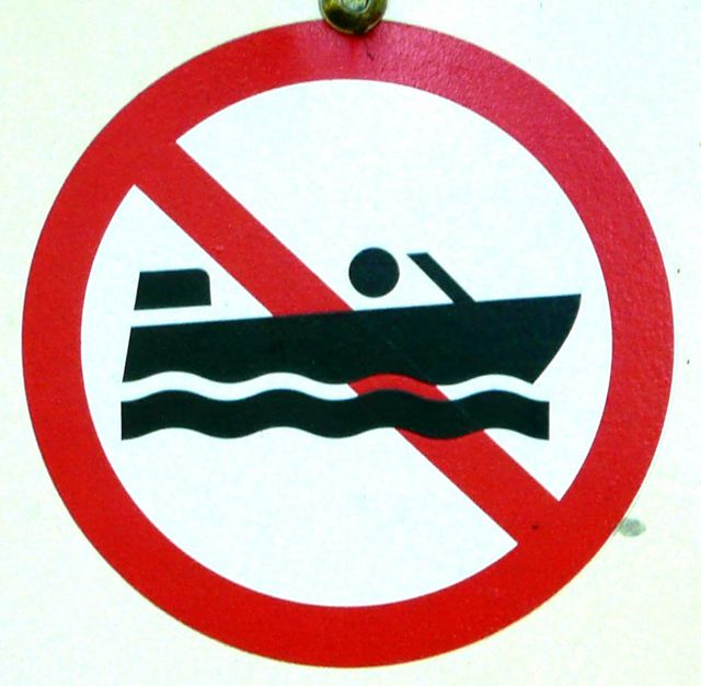 A sign indicating no power boats allowed (including electric boats), seen in Kangaroo Valley, NSW